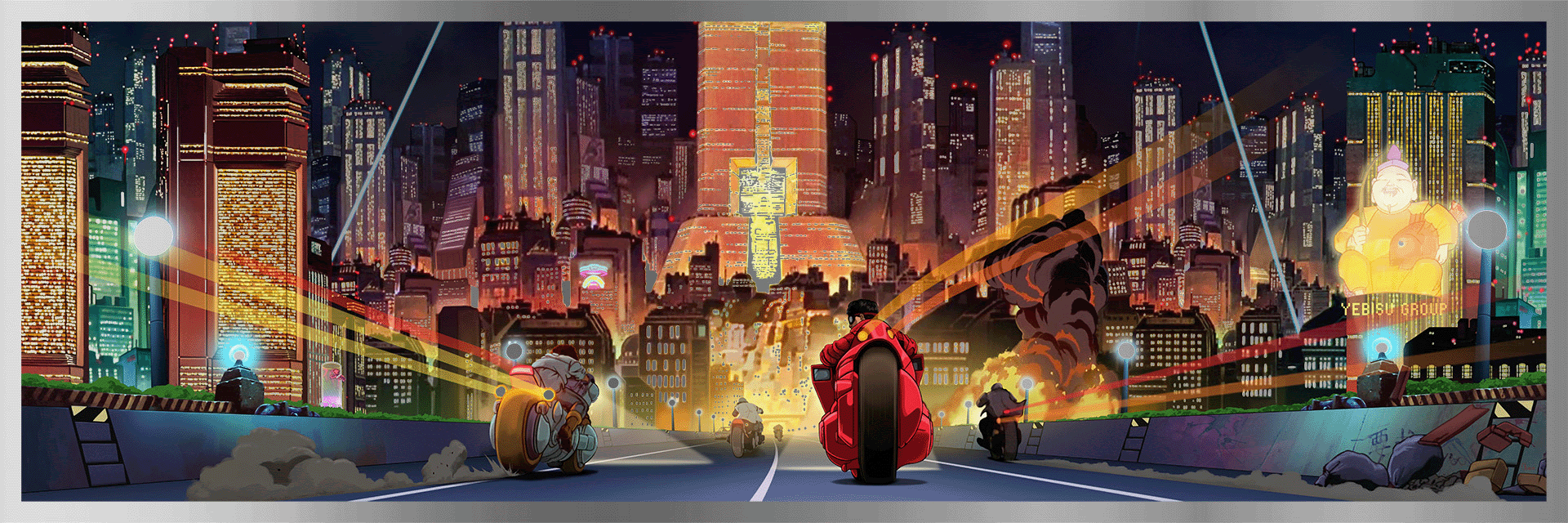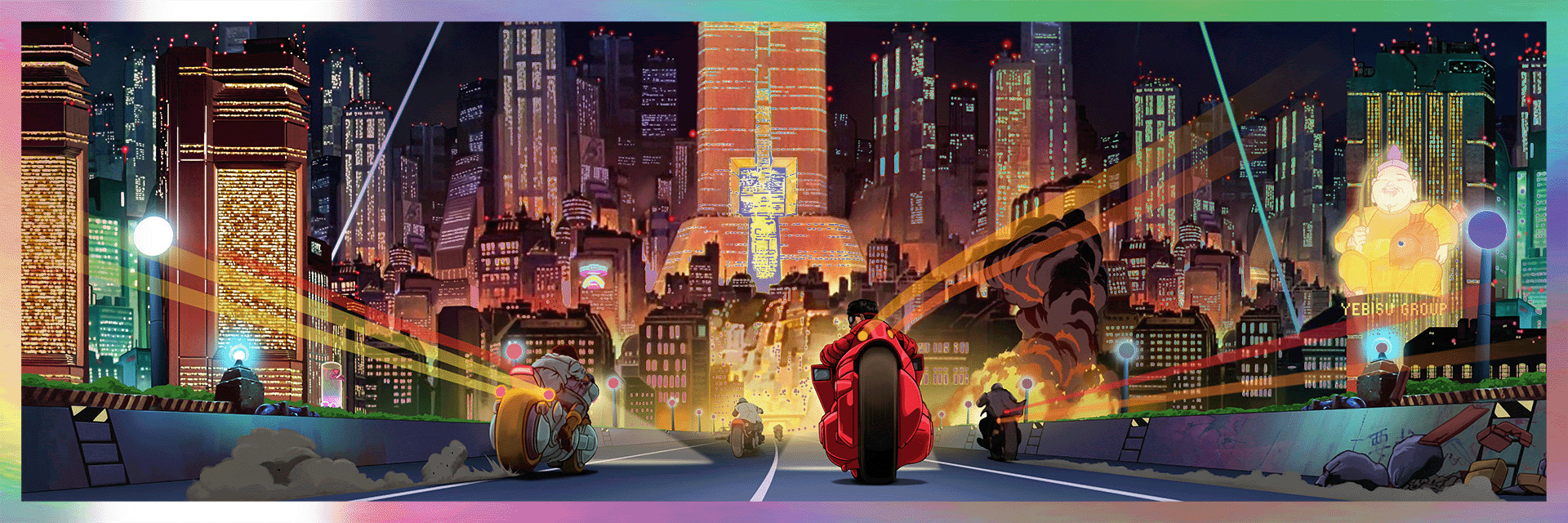 Bottleneck Gallery dips into the neon lit streets of Neo-Tokyo and drops Akira inspired by Pablo Olivera. This one in particular focuses on the biker gang from the film, Kaneda’s The Capsules as they zoom through Neo-Tokyo. Olivera has a knack for creating these dynamic horizontally, focused pieces that look fantastic and with this one in particular, Oliveira does a fantastic job, capturing the aesthetic of the anime. As is the case with past releases, these will drop in a couple different additions, including a regular and variant giclée editions. There were some additional foil giclée prints but these seem to have sold out during the presale. Details on what is on sale today is below and you can pick them up at 12PM ET on the BNG website.