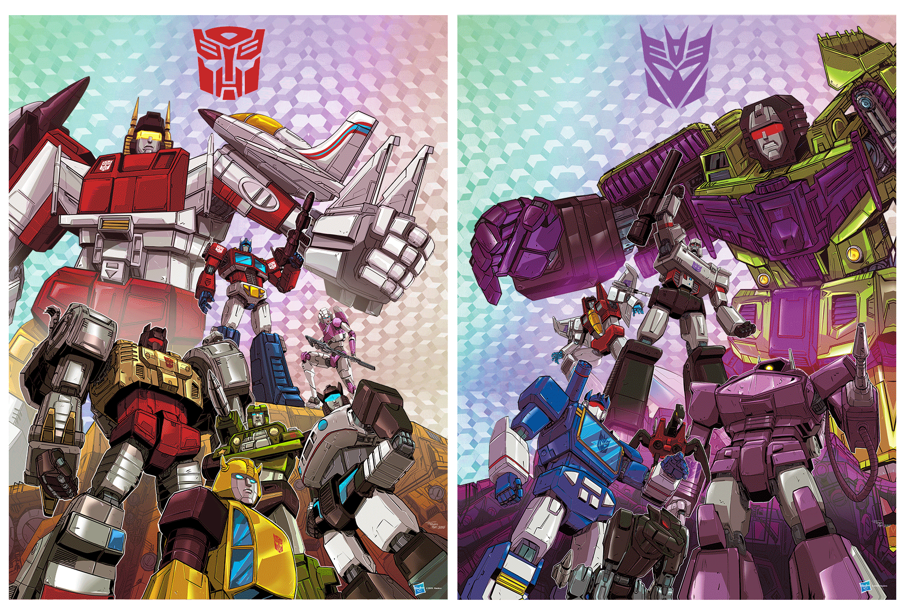 On the Transformers side, Frederick Chong returns with another strong showing. Known for his dynamic comic work and his affinity for drawing our favorite Decepticon, Soundwave, Chong brings both Autobots and Decepticons together in a bold, battle-ready composition. The set will be released as a Regular and Cubic Foil edition, sold together.